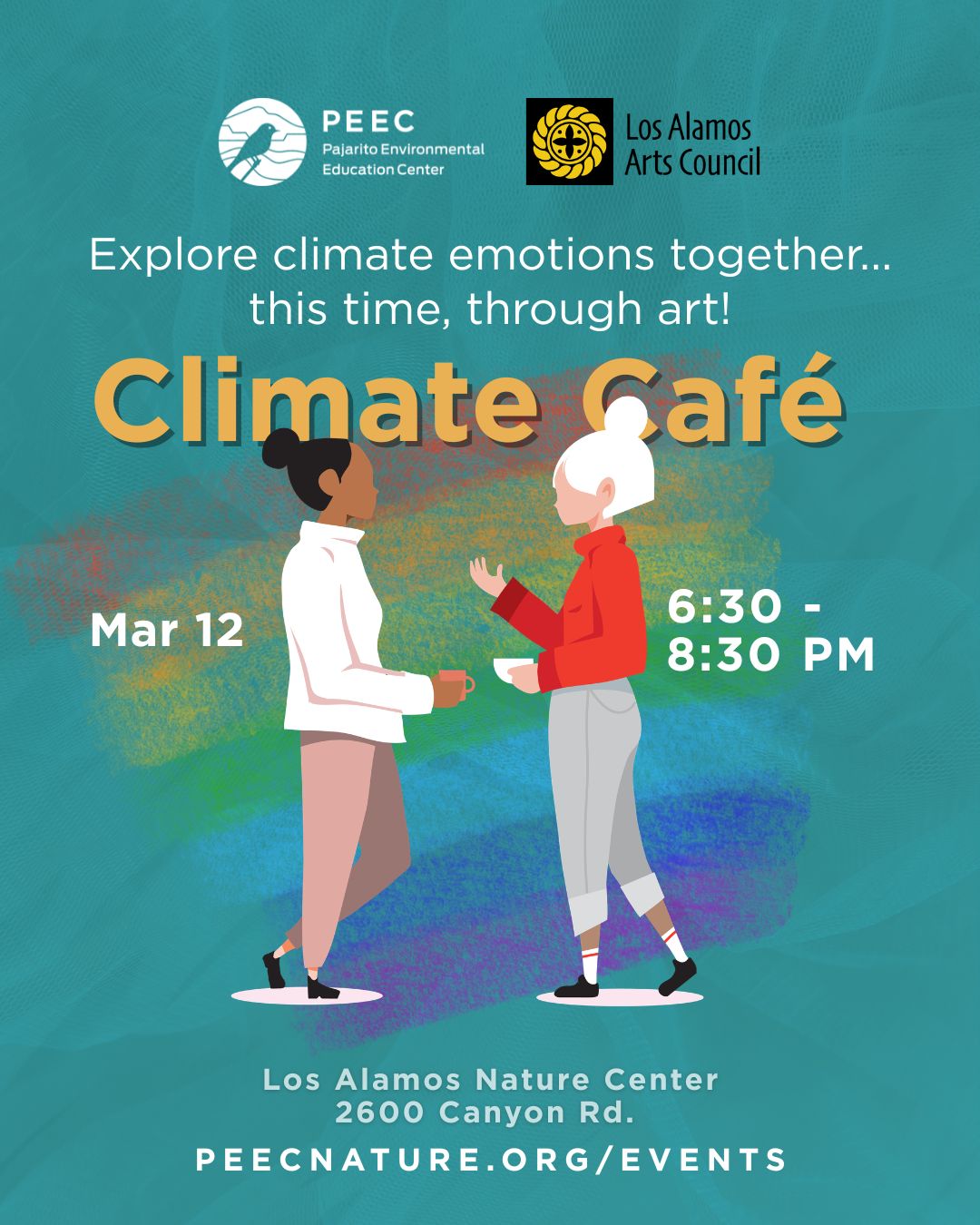 The Pajarito Environmental Education Center (PEEC), in partnership with the Los Alamos Arts Council, invites the community to March’s Climate Café from 6:30-8:30 p.m. Thursday, March 12 at the Los Alamos Nature Center.