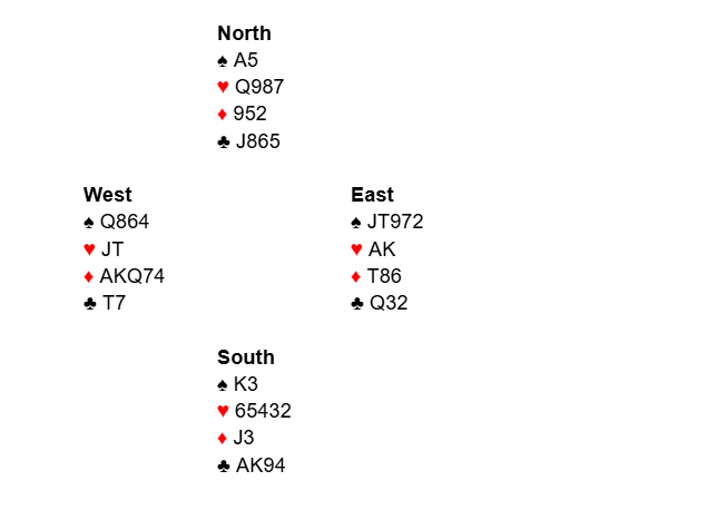 Here is another very competitive hand. Both sides should be in the auction. It pays to be bold, especially with the E/W hands.
