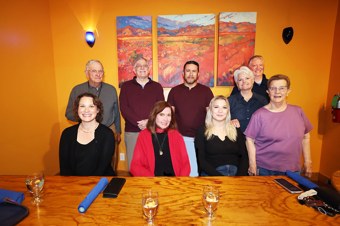 Post news team members celebrate the statewide honor on Tuesday at Blue Window Bistro. Front row from left, Managing Editor Kirsten Laskey, Publisher Carol A. Clark, Graphic Designer Páya Pavlíková and Sports Schedule Coordinator Charlene McHale. Back row from left, Photographer John McHale, Reporter Mark MacInnes, Newspaper Distribution Coordinator Delbert Romero, Advertising Manager KayLinda Crawford and Photographer Tomás Redondo. Not pictured are Social Media Editor Chris Clark, Photographer/Videographer Nate Limback and Bookkeeper Chip Clark. Courtesy photo