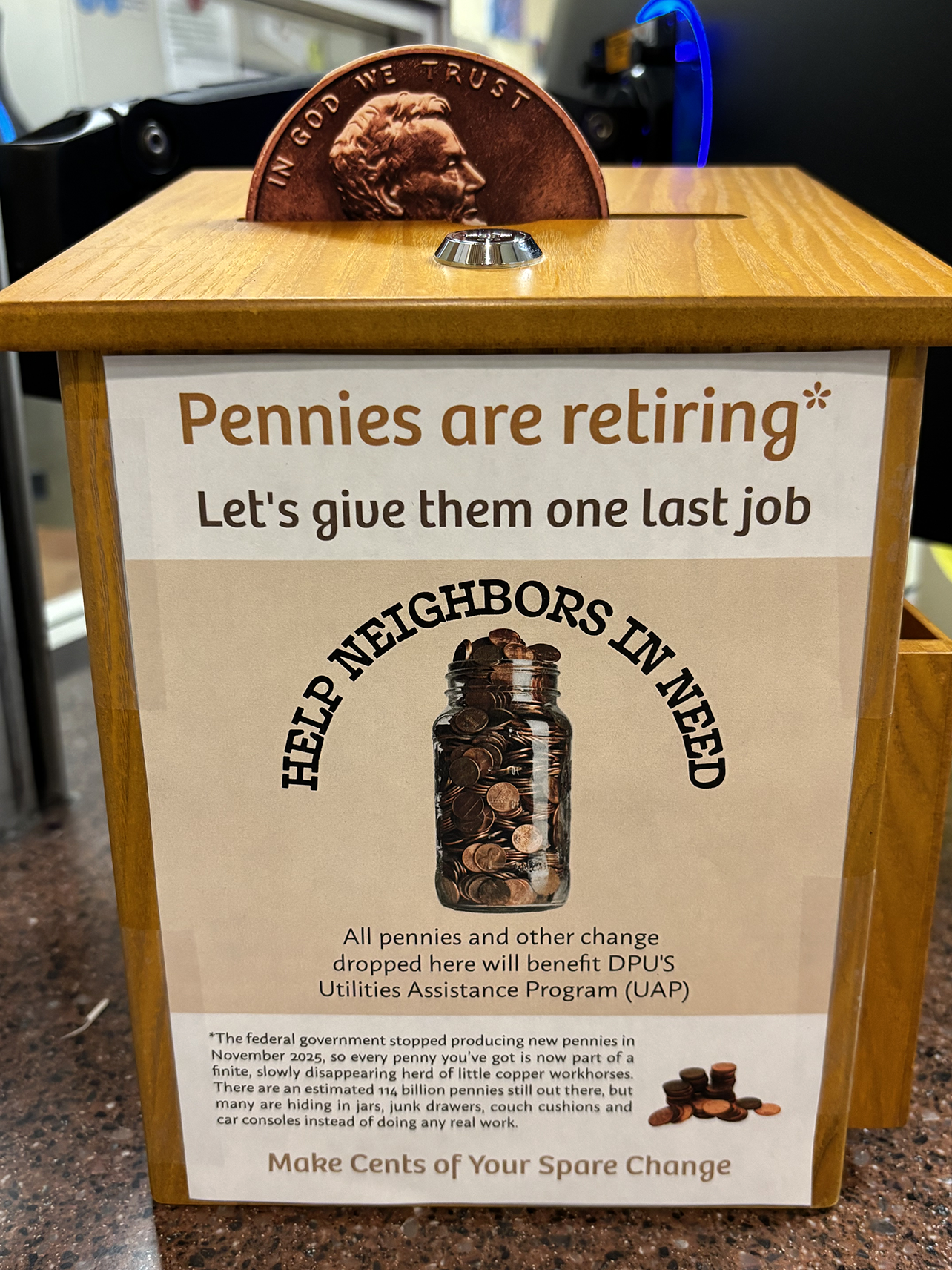 In support of the Utilities Assistance Program (UAP), the Los Alamos Department of Public Utilities (DPU) recently led an effort to turn pennies into positive impact, raising an extra $240 for the program.