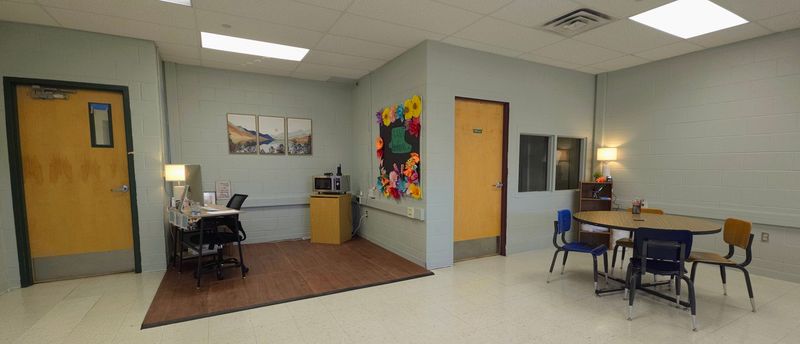 Wall art, tables, and seating create space for reflection in the Wellness Room at Jemez Valley High School, which is designed to support student self-regulation and stress management during the school day. Courtesy/Jemez Valley Public Schools.