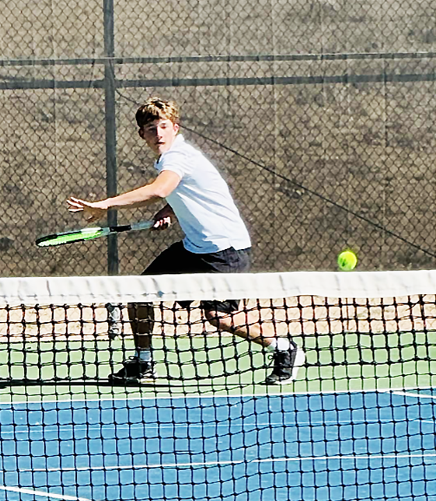 Freshman Levi Gibson prepares to rip a forehand at this weekend’s Academy Invite Tournament. Courtesy photo