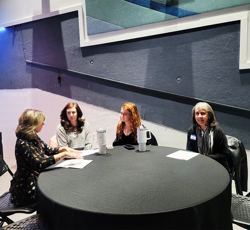 Before the event gets underway, 100+ Women Who Care–Los Alamos Steering Committee member Angie Bratton explains details of the evening’s event to sponsor TechSource, Inc. staff members Jackie Beckner and Margaret Cardiel as attendee Judy Bjarke-McKenzie listens at right. Photo by Carol A. Clark/ladailypost.com