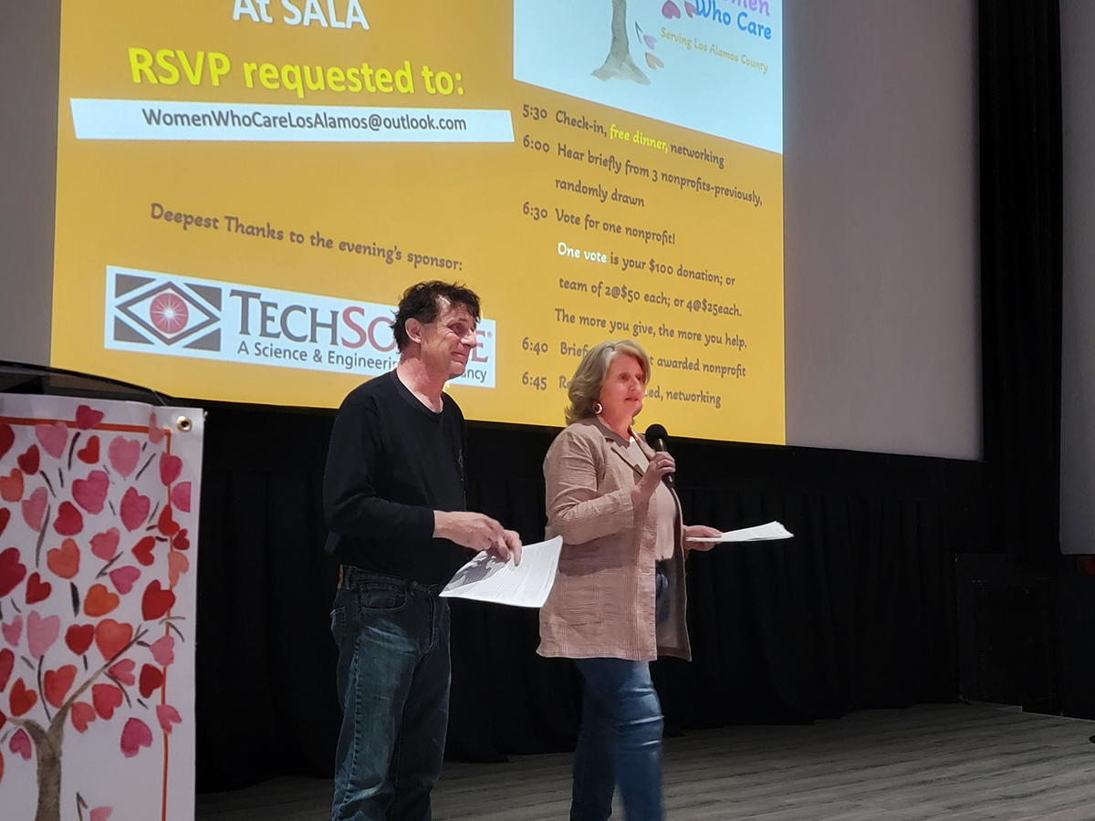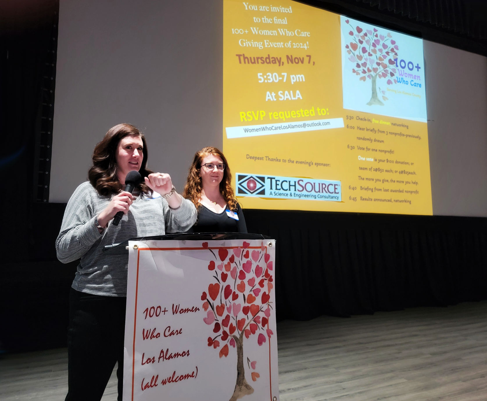 100+ Women Who Care–Los Alamos Steering Committee member Angie Bratton welcomed the more than 40 women to the fourth and final giving event of 2024. She thanked event sponsor TechSource, Inc. and introduced Jackie Beckner and Margaret Cardiel of TechSource, Inc. who served as emcees for the evening. Photo by Carol A. Clark/ladailypost.com