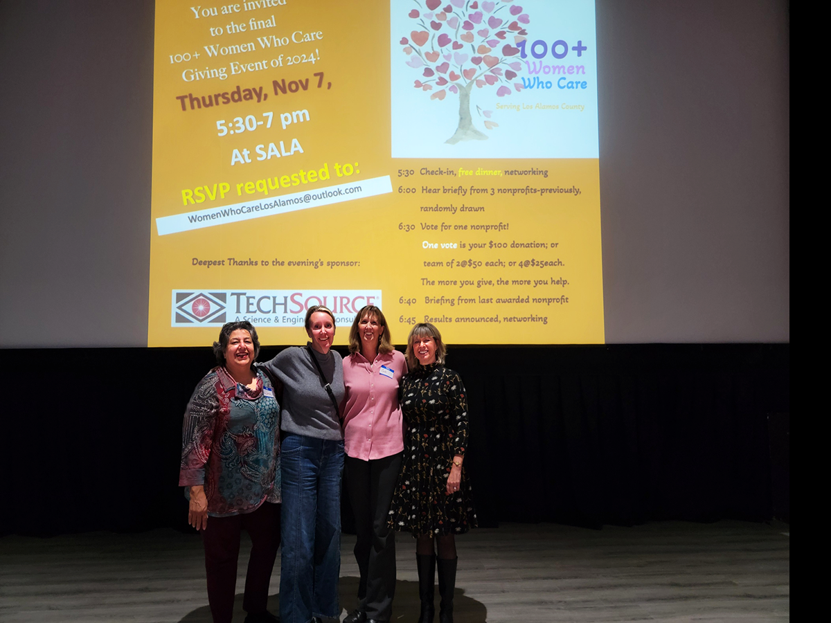 Members of the 100+ Women Who Care–Los Alamos Steering Committee from left, Diana Martinez, Kristy Ortega, Cate Nickless, Angie Bratton and, not pictured Carol A. Clark. The steering committee thanks the Los Alamos Community Foundation for acting as its fiscal agent. About 100+ Women Who Care: Founded in August 2015 by Kristy Ortega, Carol A. Clark, Stephanie Garcia Richard, Debbie Shelton and Marvel Kellogg, attended since that time by more than 200 women in the community, the organization has granted more than $90,000 to benefit dozens of local nonprofit organizations. Anyone wishing to join the steering committee, has a question or wants to be added to the email list, please email WomenWhoCareLosAlamos@outlook.com. Local non-profit organizations are encouraged to submit an application for future consideration here: application. Photo by Carol A. Clark/ladailypost.com
