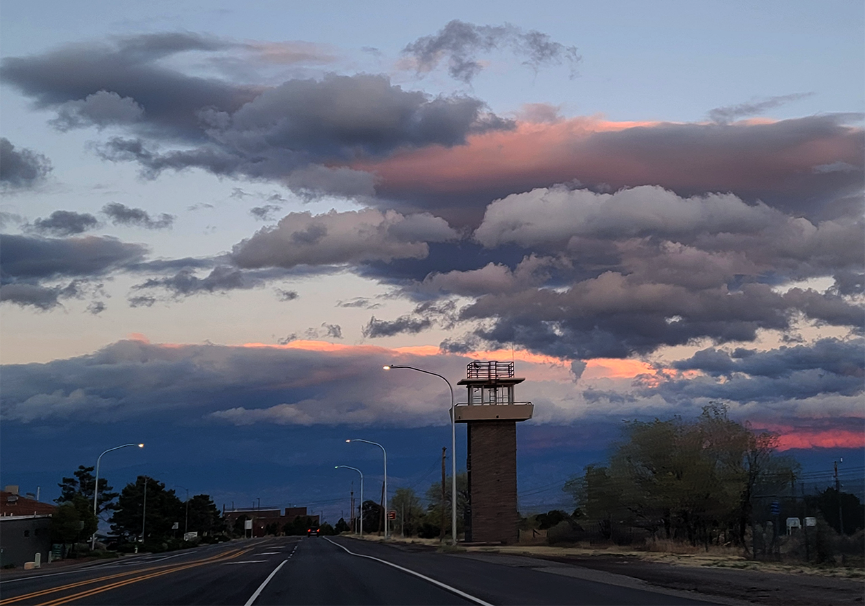 View of pastel colored clouds across the sky behind the guard tower on Wednesday evening along N.M. 502. Photo by Carol A. Clark/ladailypost.com Read More