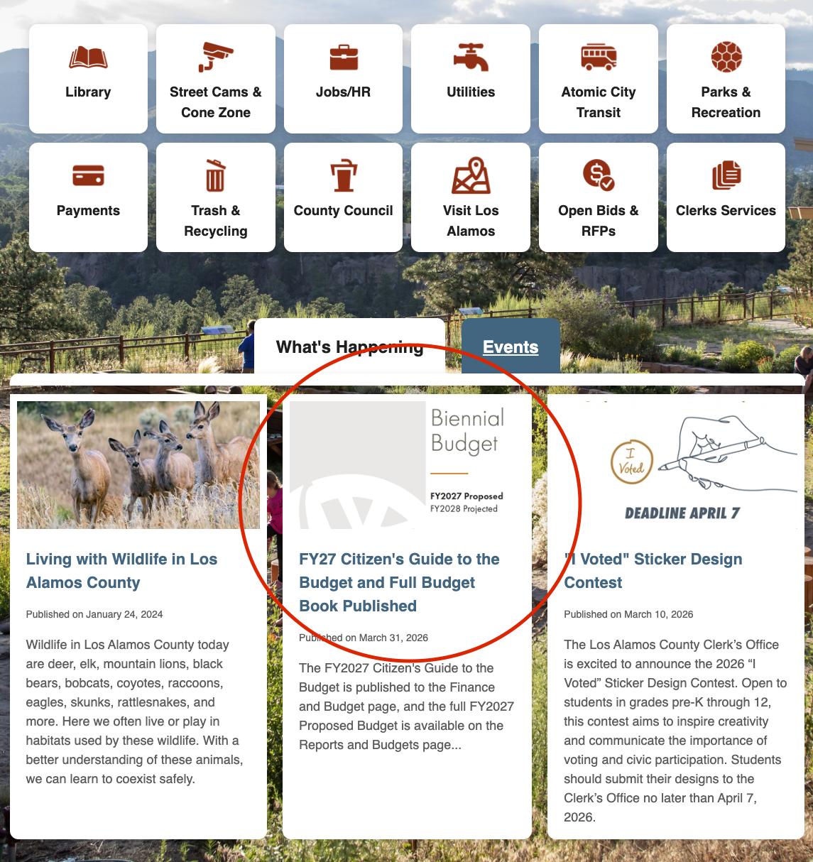 You can also access the FY2027 Proposed Budget and the Citizen’s Guide to the Budget via the County website home page under What’s Happening: