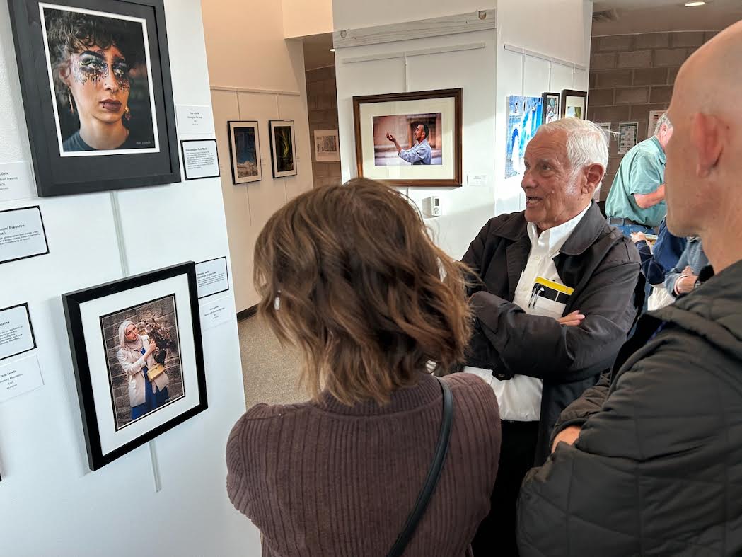 Peter LaDelfe discussing photos with exhibit visitors. Courtesy photo