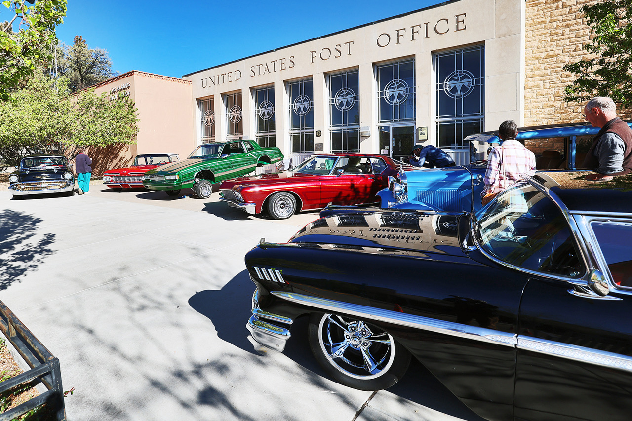 The Los Alamos Post Office invited the community to celebrate the nationwide issuance of Lowrider stamps, view six cool lowrider vehicles and listen to music this morning. Photo by John McHale/ladailypost.com