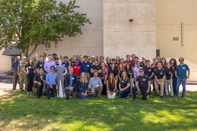 University student participants pose for a group photo after completing a Space Dynamics Laboratory internship experience as part of the new Mission Concept Program in July 2023 in Albuquerque. AFRL and NASA first announced their collaboration with eight universities for the Mission Concept Program in 2023. The program, sponsored by AFRL’s Space Vehicles Directorate, was held under the University Nanosatellite Program, which started in 1999 and has collaborated with 53 universities since its inception. Courtesy/AFRL