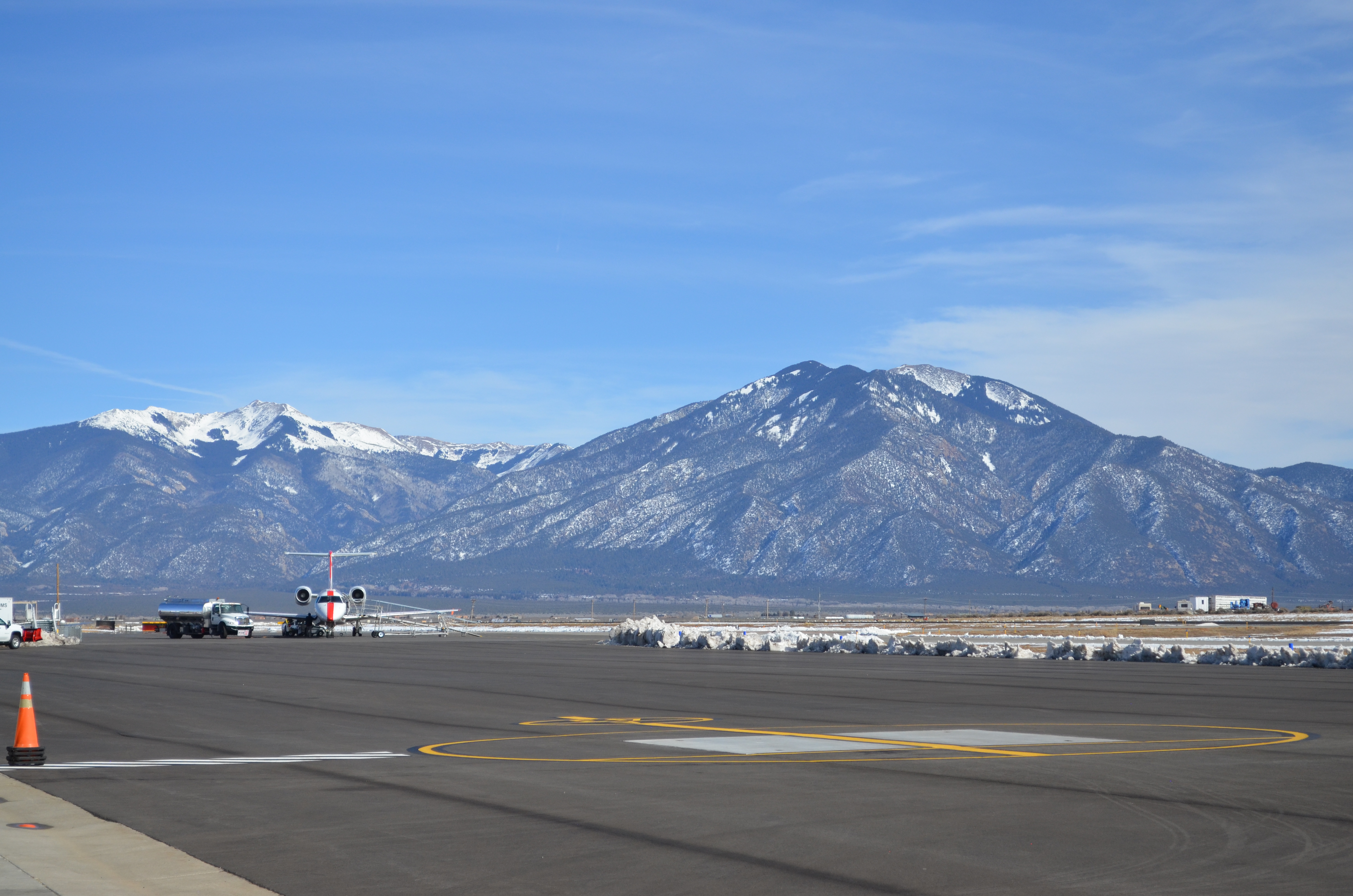 View of the Taos mountains from Taos Regional Airport runway with JSX air service. Courtesy photo