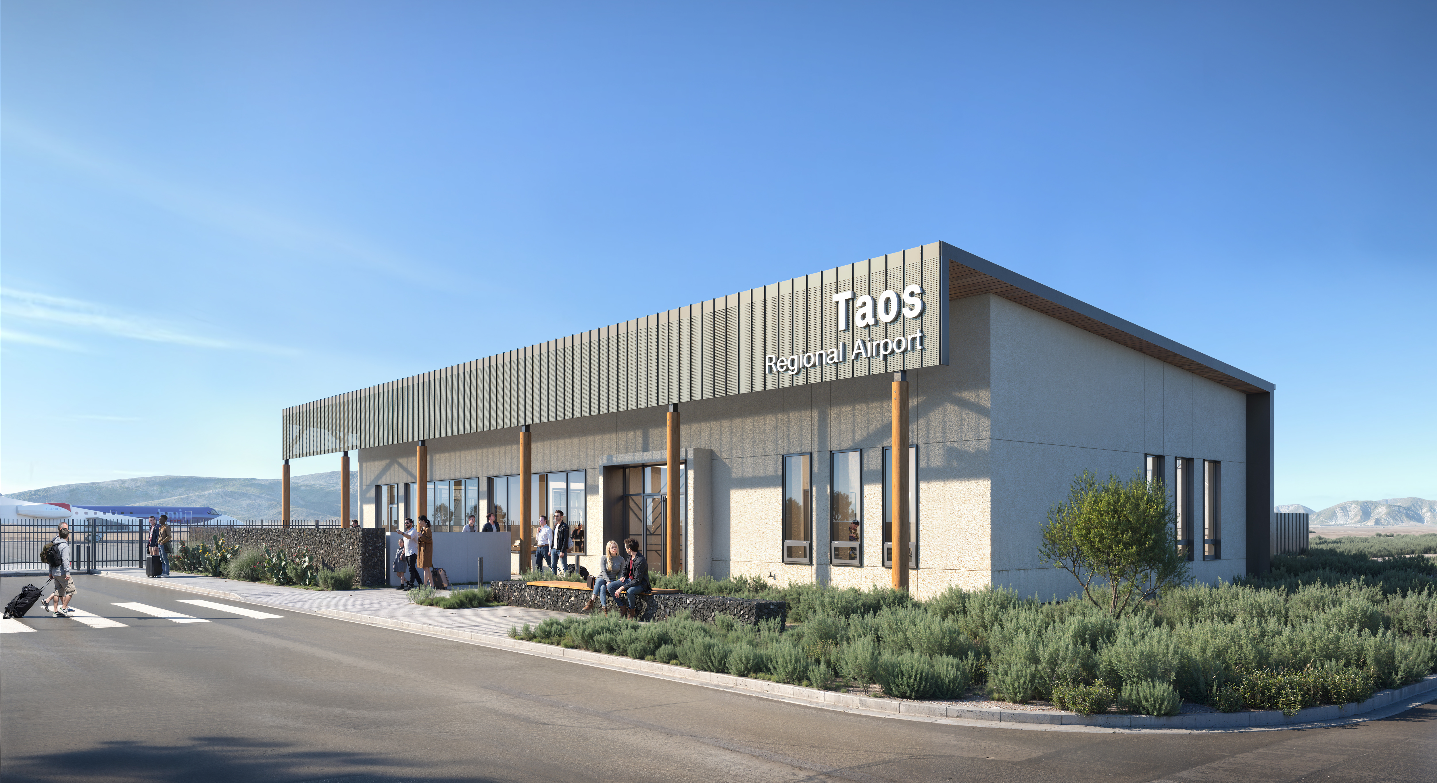 The Town of Taos received a $5.4 million Capital Appropriation from the State of New Mexico and an additional $1.5 million in supplemental funding from New Mexico Department of Transportation Aviation Division that will cover most of the terminal construction costs. The project emphasizes a harmonious blend of modern architecture and attention to ecology. The landscape design incorporates native plant materials and organic patterns to reflect the natural beauty of the Taos region.