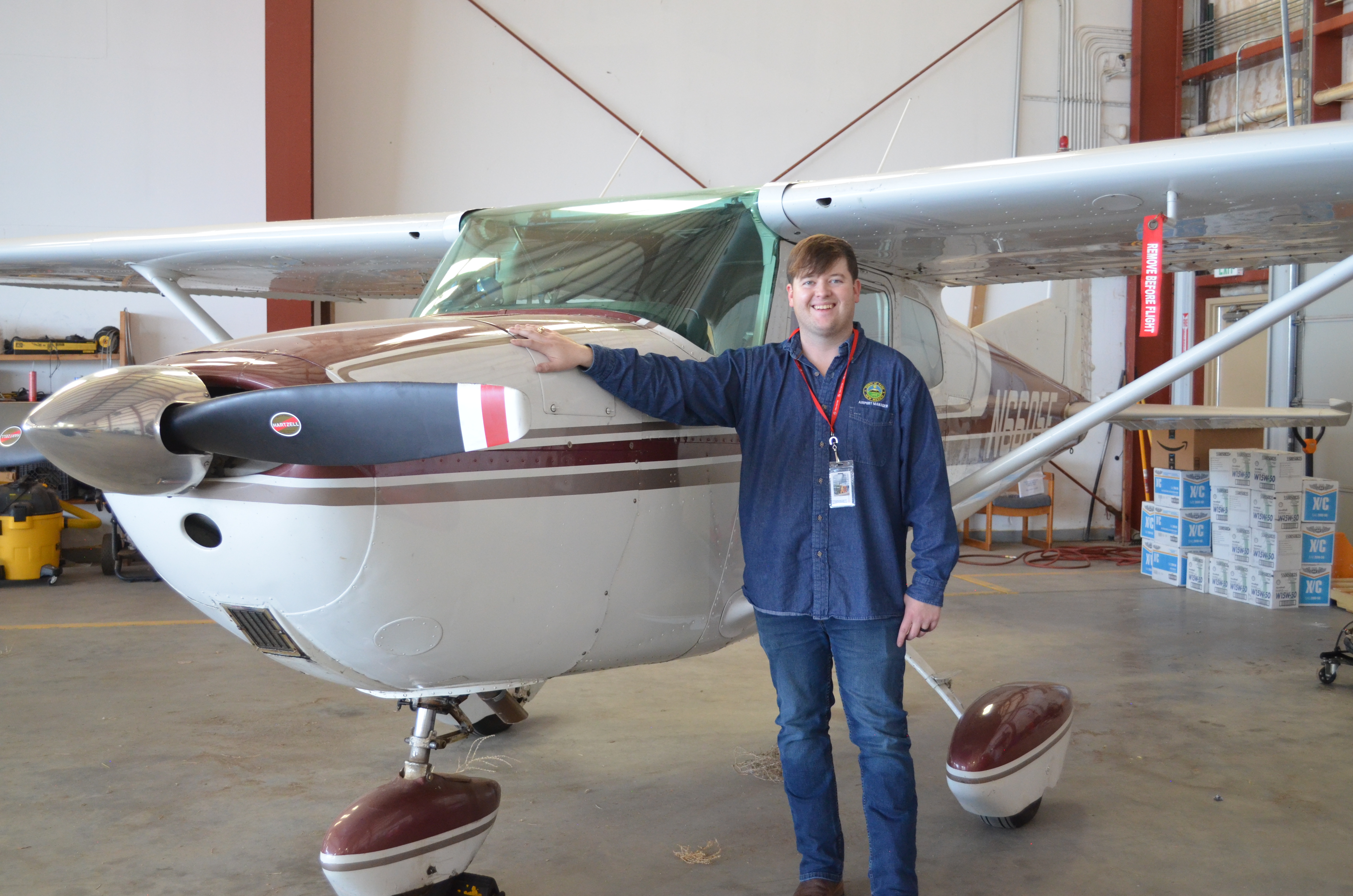 Taos Regional Airport Manager Colton Rapstine pictured with his 1959 Cessna 175. Courtesy photo