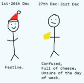 One of my favorite memes online describes how we feel in this “week between” the holidays of Christmas and New Year’s day as “Confused and Full of Cheese”. (See image)