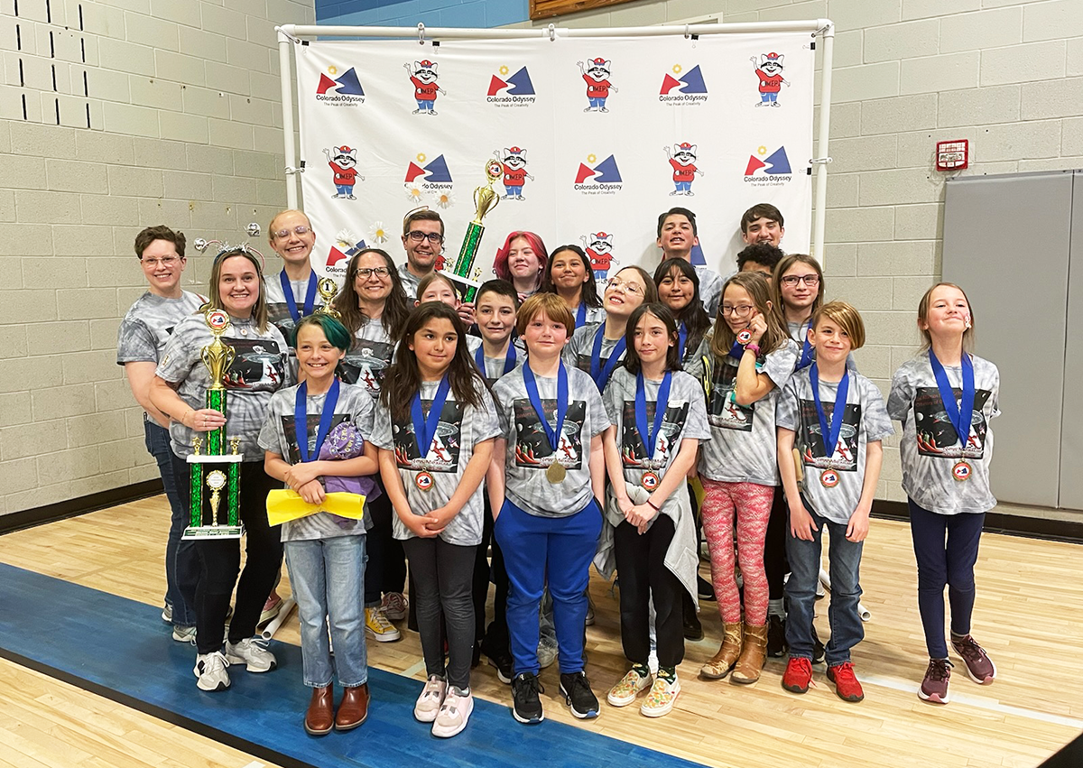 Members of the Los Alamos Odyssey of the Mind teams celebrate their wins at the Colorado state Odyssey of the Mind competition. Courtesy/LAPS
