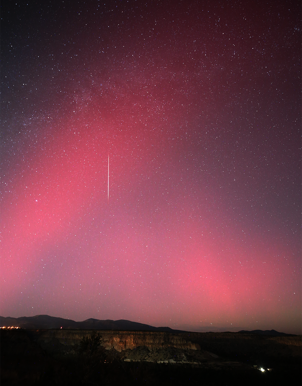 A meteor is spotted in the Aurora Borealis viewed Thursday night from Barranca Mesa and the Anniversary Trailhead. Photo by John Stone