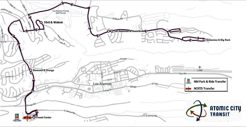 For specific route service schedules, visit https://www.losalamosnm.us/Services/Atomic-City-Transit.