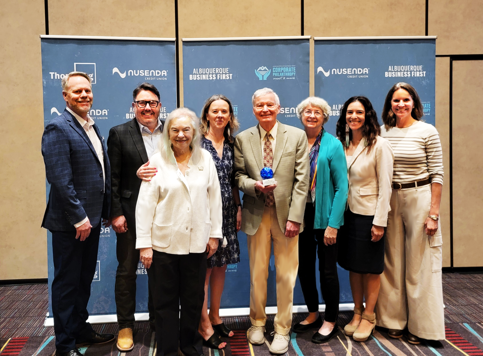 2026 Thornburg Philanthropist of the Year recipient Bill Wadt holds his award and is surrounded by, from left, LANL Foundation Vice President for Operations and Advancement Read More