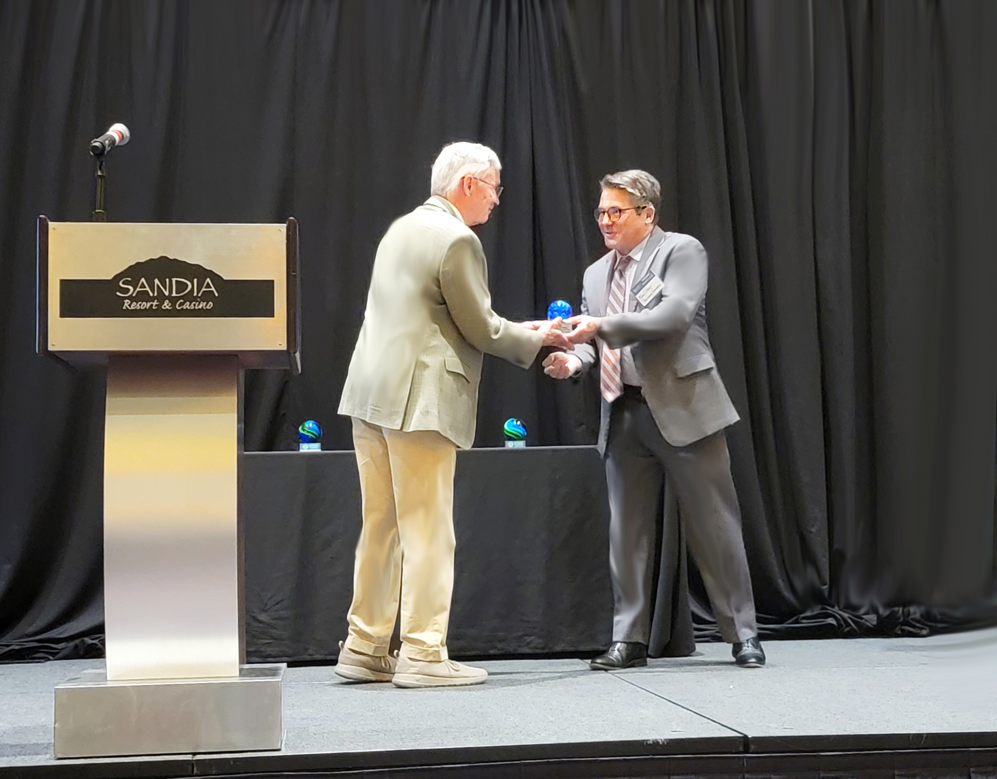 Thornburg Foundation President Allan Oliver presents the 2026 Thornburg Philanthropist of the Year award to Bill Wadt of Los Alamos on April 16 at Sandia Resort in Albuquerque. Photo by Carol A. Clark/ladaily/post.com