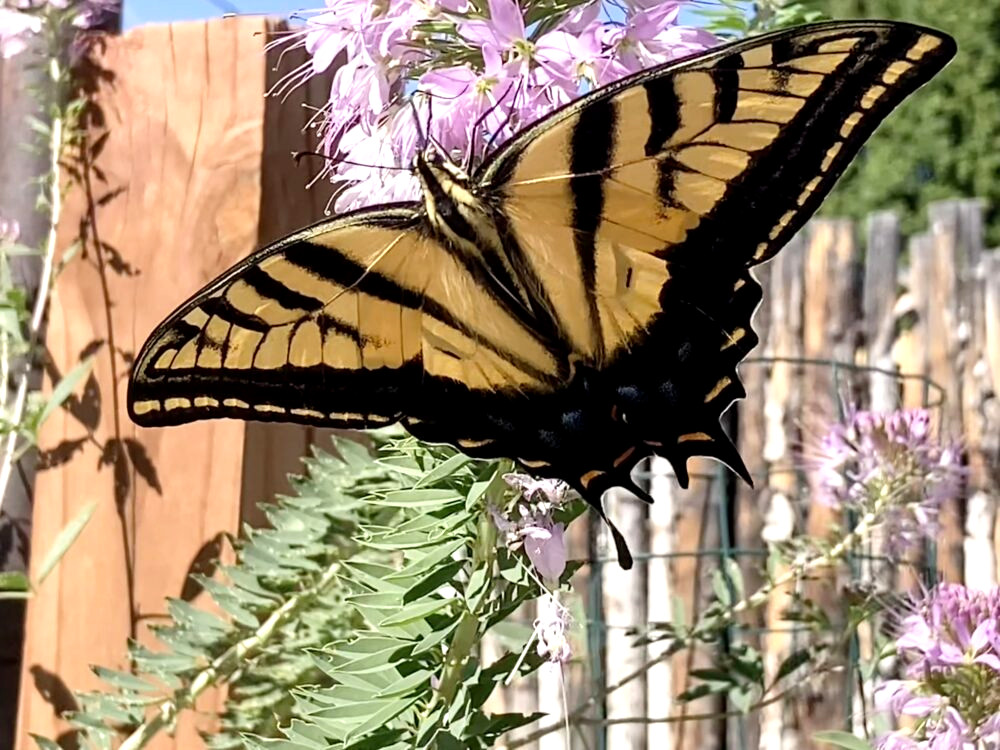 Two-tailed Swallowtail Butterfly on native Cleome serrulata, White Rock, NM. Photo by Dana Ecelberger