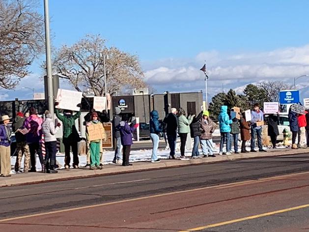A scene of a recent protest against ICE along Trinity Drive. Photo by Jody Benson