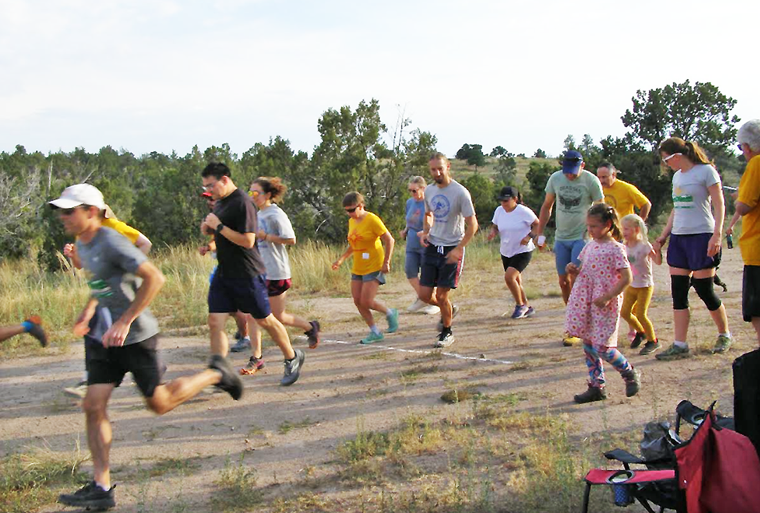 To get to Range Road, take Diamond Drive Northbound and turn left on Range Road at the fire station before the traffic circle separating the two mesas. 1-, 2-, and 3-mile trail runs and a 1-mile paved run will be available.