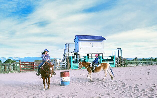 Erin Hannon and Millie Darlington take practice laps around barrels on Wednesday afternoon at Brewer Arena as part of their preseason training. Photo by John McHale/ladailypost.com