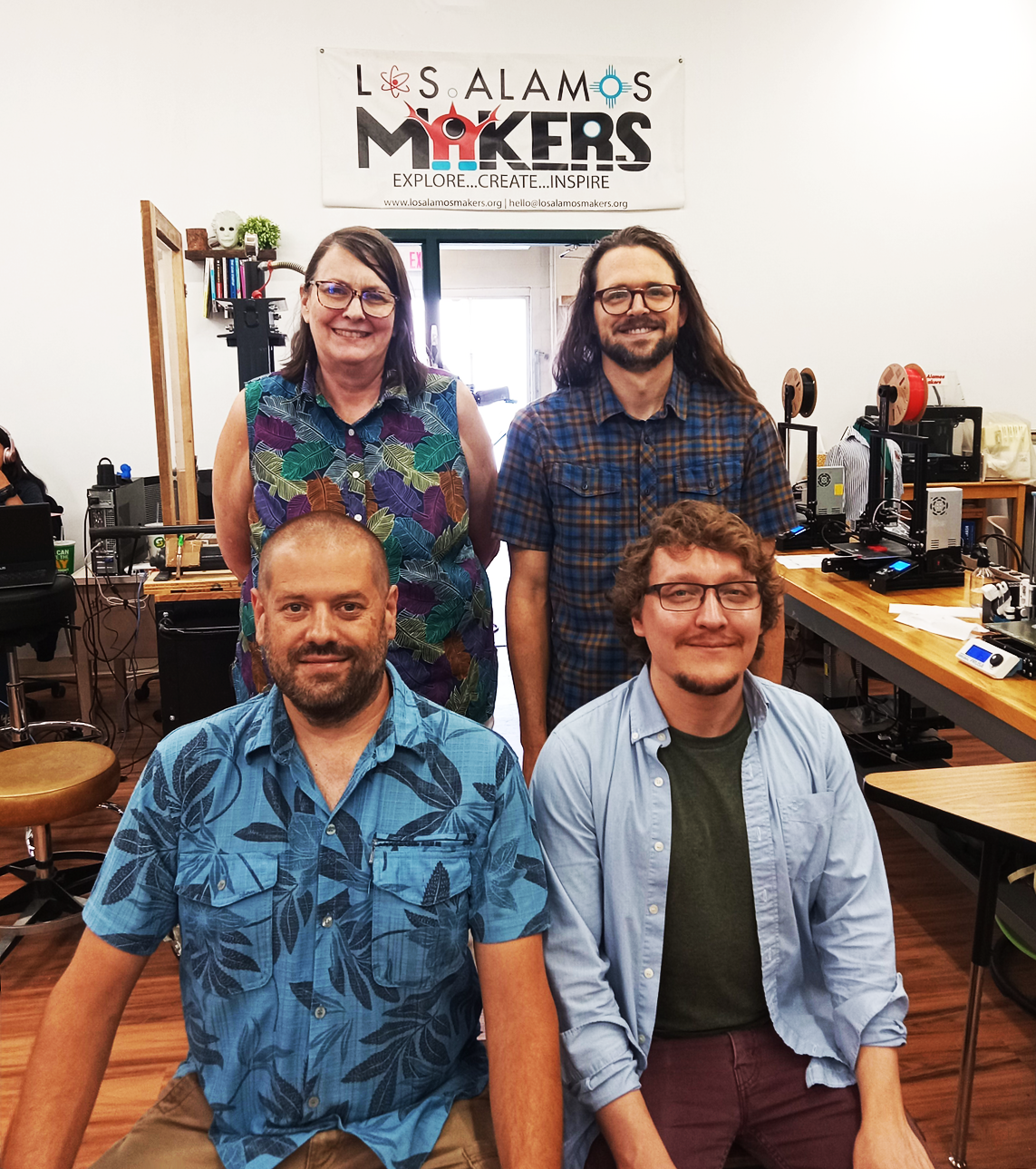 Mentors and volunteers for the 3D Printing Summer School at Los Alamos Makers, from top left, Kathy Fitch and Brett Blackwell; bottom from left, Jacob Yoder and Josh Breidenbach; Not shown: Dusan Kral. Courtesy photo