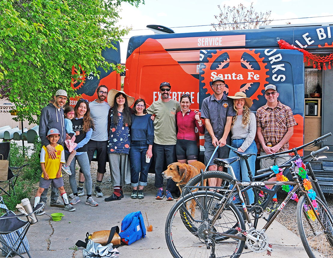 Mobile Bike Works Santa Fe co-owners Todd Baribault, third from right, and wife Caroline Knapp, second from right, have expanded bike repair services into Los Alamos and White Rock. Courtesy/MBW