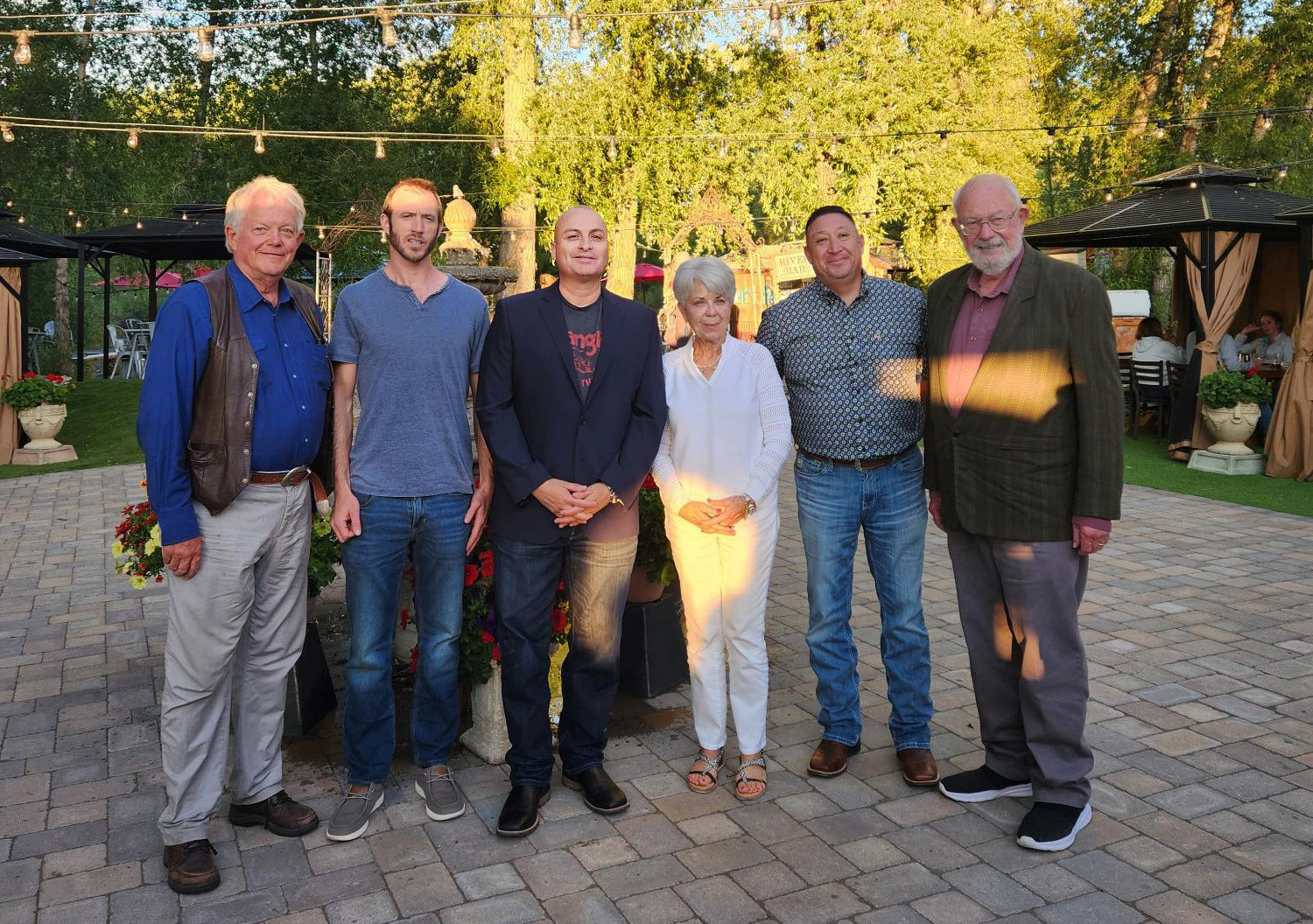 Gathered Aug. 24 in Colorado, from left, Butch Clark, III advisor Luke Danielson, Architect Cillian Barrett, NNMC President Hector Balderas, NNMC Major Gifts Officer Judith Pepper, NNMC Technical Trades Chair Joe Padilla and Butch Clark III. Courtesy/NNMC