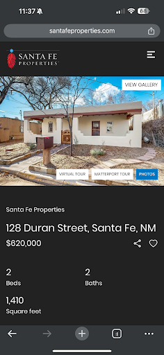 The person helpfully lists the address in the listing, so I was able to Google the address and find it was recently listed for sale by a Santa Fe real estate agency for $620,000. If they hadn’t been helpful enough to list the address, I probably could have found this information via a Google image search.