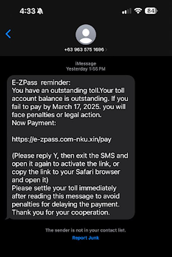 The new round of messages claim the victim owes money for unpaid tolls, and all contain nearly identical language. All reported messages mention an “outstanding toll amount” with a clickable link.