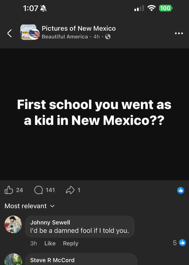 Here’s a recent example I saw on Facebook in a popular NM Facebook group: