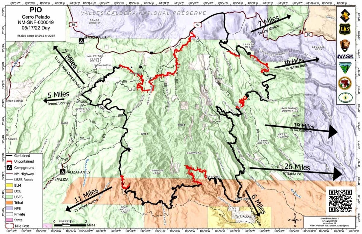 - The Santa Fe National Forest has closed the Cerro Pelado Fire Area (closure order) and Fire Base Camp along Forest Road 376 (closure order).