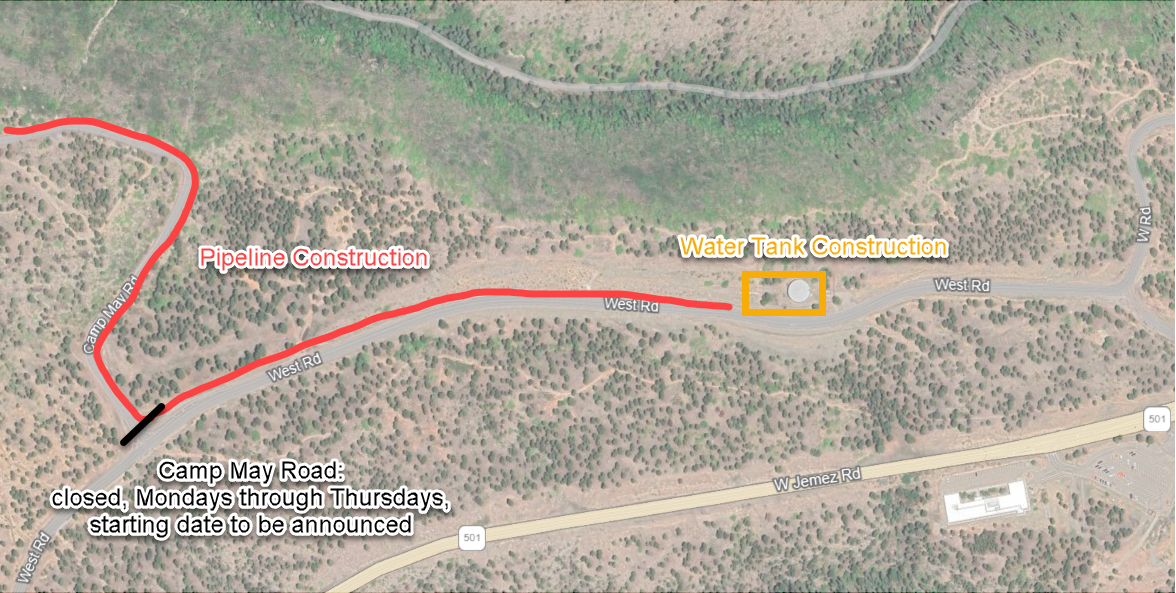 To accomplish those objectives, DPU has plans to construct a water tank, water pipeline, four booster pump stations, and fiber optic (for booster pump stations) and electrical conduit. Construction of the water tank and the water pipeline will begin April 1. These project stages will impact traffic on West Jemez Road as well as on Camp May Road.