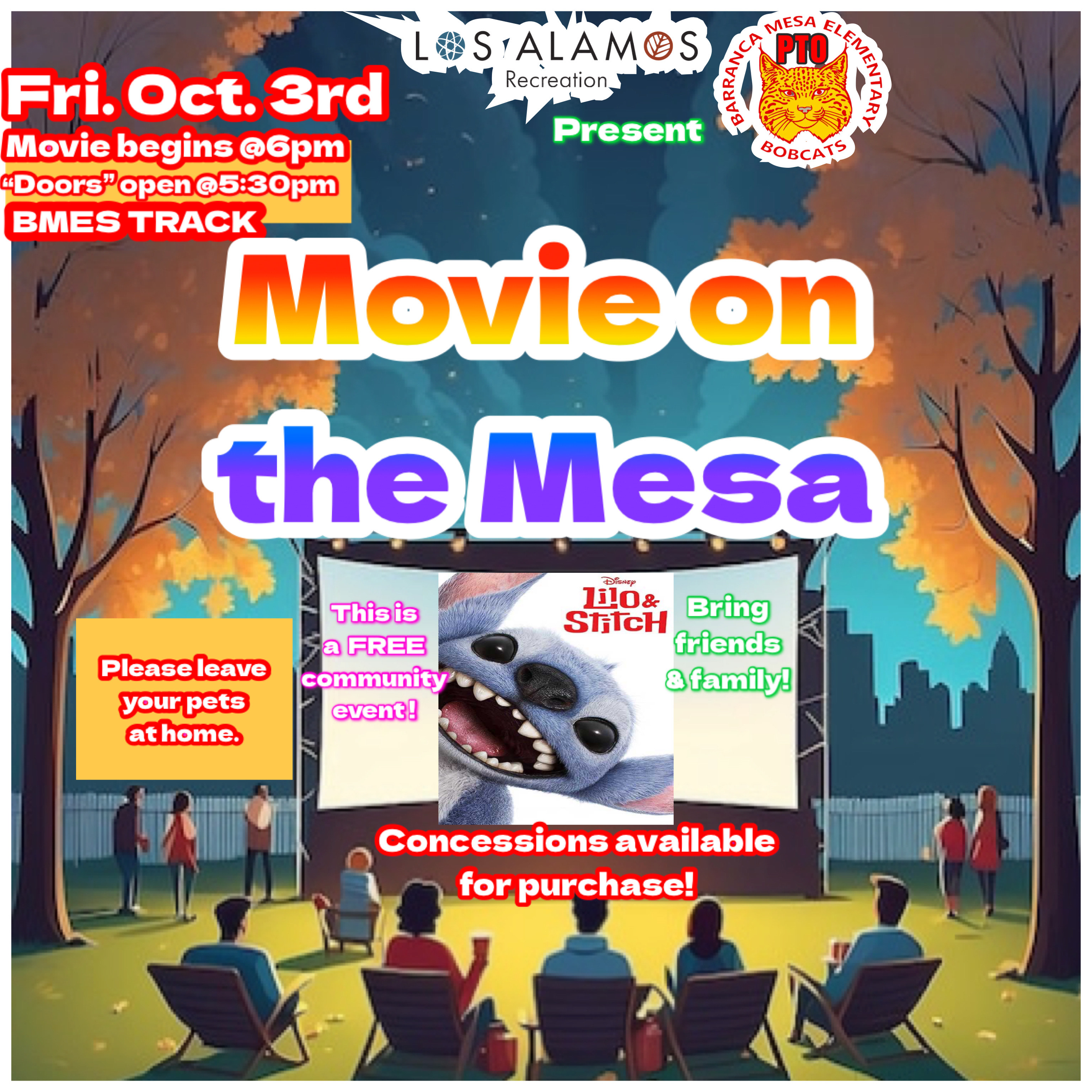 Los Alamos Recreation and Barranca Mesa PTO is once again teaming up to bring the community Movie on the Mesa—a free community event at 5:30 p.m., Friday, Oct. 3. This is a fun, family event to bring the community together