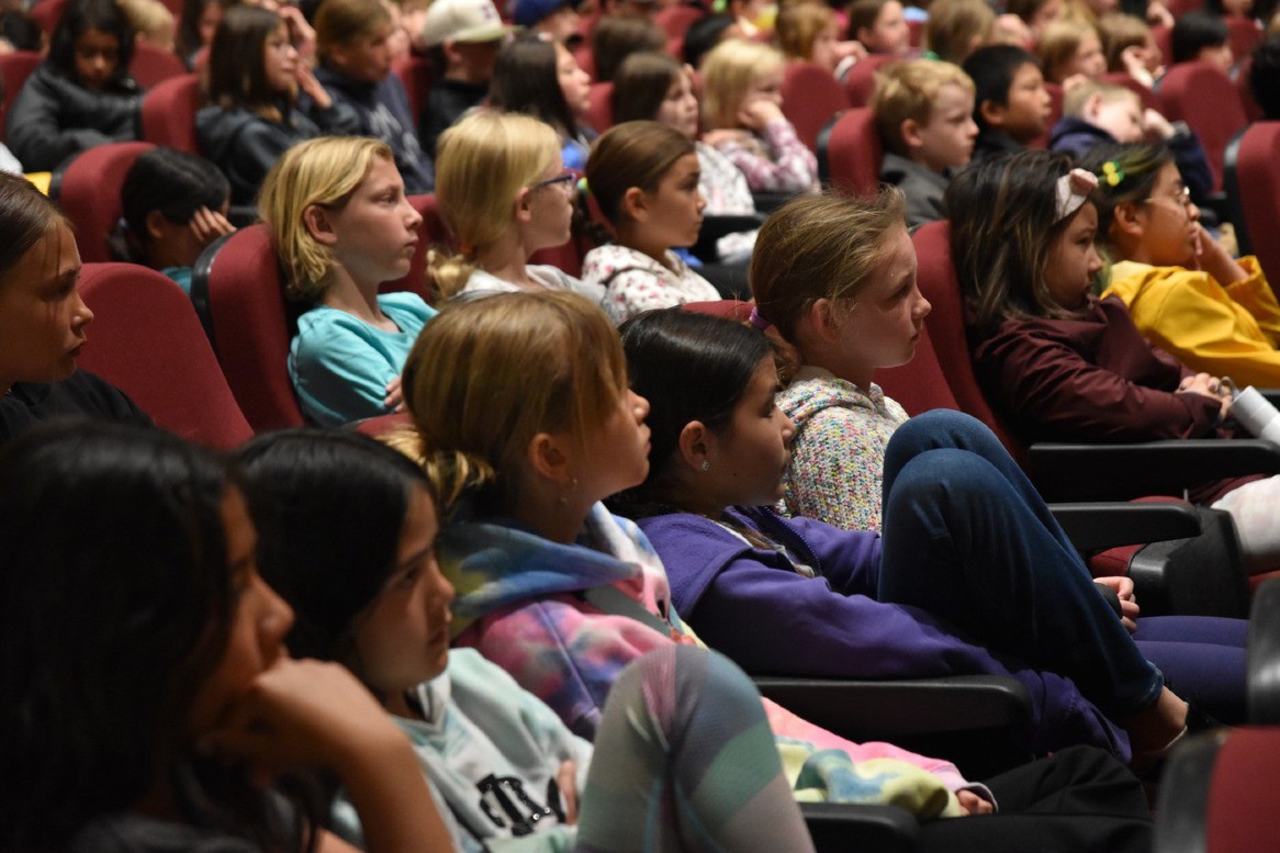 Elementary orchestra students listen while the Los Alamos High School Symphonic Strings performe two compositions by Soon Hee Newbold. Courtesy/LAPS
