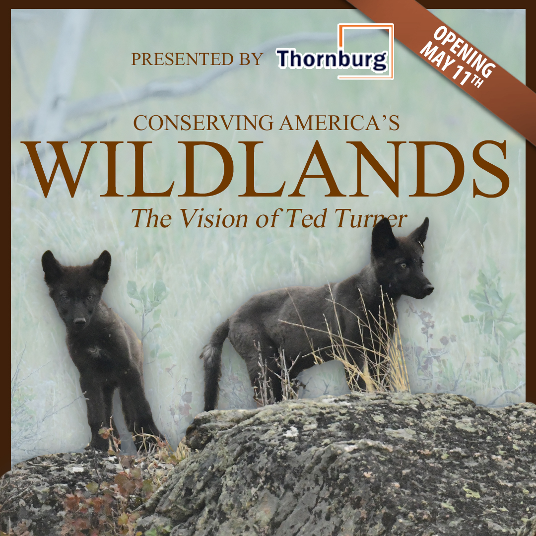 Graphic promoting Conserving America’s Wildlands: The Vision of Ted Turner. Exhibition opens May 11, 2024 New Mexico at Museum of Natural History & Science in Albuquerque. Courtesy/NMMNHS