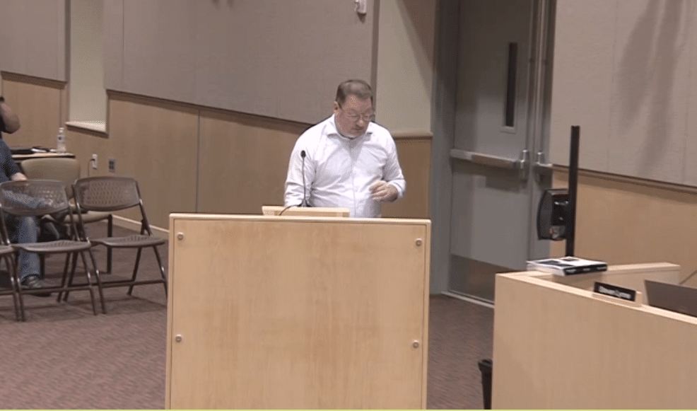 Los Alamos County Community Development Department Director Paul Andrus discusses what the duties would be for the proposed Business Assistance Coordinator during tonight’s FY23 Budget Hearing. The Business Assistance Coordinator position was one of several proposed budget options placed on the ‘parking lot’ during last week’s Budget Hearings for further discussion this week. The Business Assistance Coordinator position was approved 7-0. Council also tentatively approved 5-2 a budget for two additional FTEs positions for the police department. Councilors David Izraelevitz and Sara Scott were opposed. Another budget option, an electric car for the police patrol fleet, was not voted on due to an absence of council’s support for it. The budget options for funding for an equipment operator for right of way maintenance and permaculture weed barrier associated with the glyphosate ban were tentatively approved 6-1 with Izraelevitz opposed. Council Chair Randall Ryti requested further discussion on the budget option for sustainability program but no vote was taken to amend the budget option. Screenshot/LADP