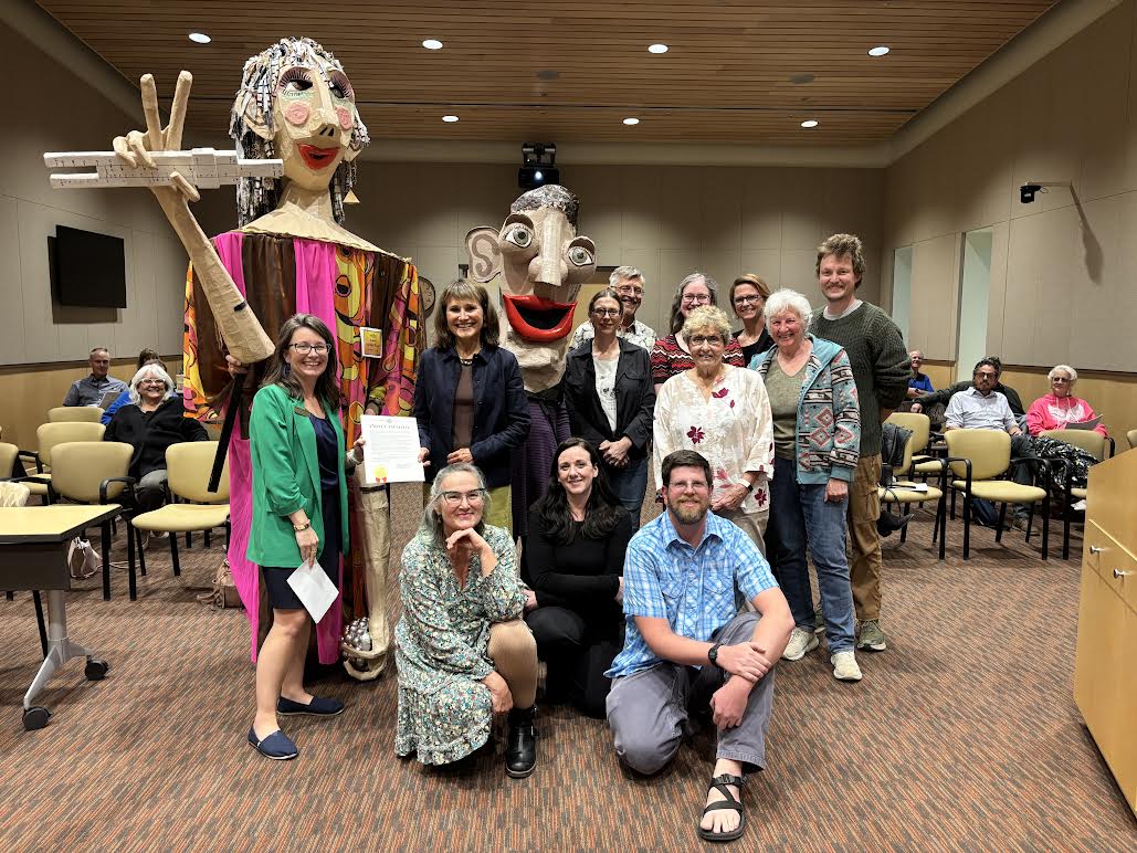 The Los Alamos County Council proclaimed October as Arts and Humanities Month in Los Alamos County at the Sept. 30 Council meeting. Representatives from local arts and cultural organizations, including members of the Los Alamos Arts Council, Los Alamos MainStreet and Creative District, Step Up Gallery, Samizdat Bookstore and Teahouse, Village Arts, Los Alamos Community Foundation, and Los Alamos Little Theater, joined the celebration. The event even featured two community members dressed as giant puppets to highlight the spirit of creativity. Courtesy photo