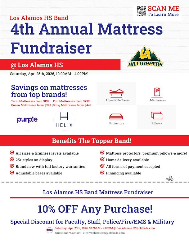 The LAHS Band will be holding its 4th annual Mattress Sale from 10 a.m.–4 p.m., Saturday, April 25 in Griffith Gym. There will be over 25 styles on display, and there will be pillows and mattress protectors for sale as well. Mattresses are shipped straight to your home!