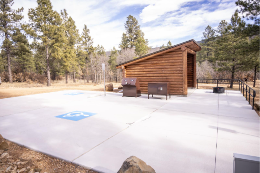 The new campground includes five recreational vehicle (RV) sites with modern shelters, electricity and water hookups, including one accessible site. The new Aserradero (Spanish for sawmill) Loop also includes five cabins, including one that is fully accessible. All cabins include electric power, interior lighting, wood stoves and a dedicated water hydrant.