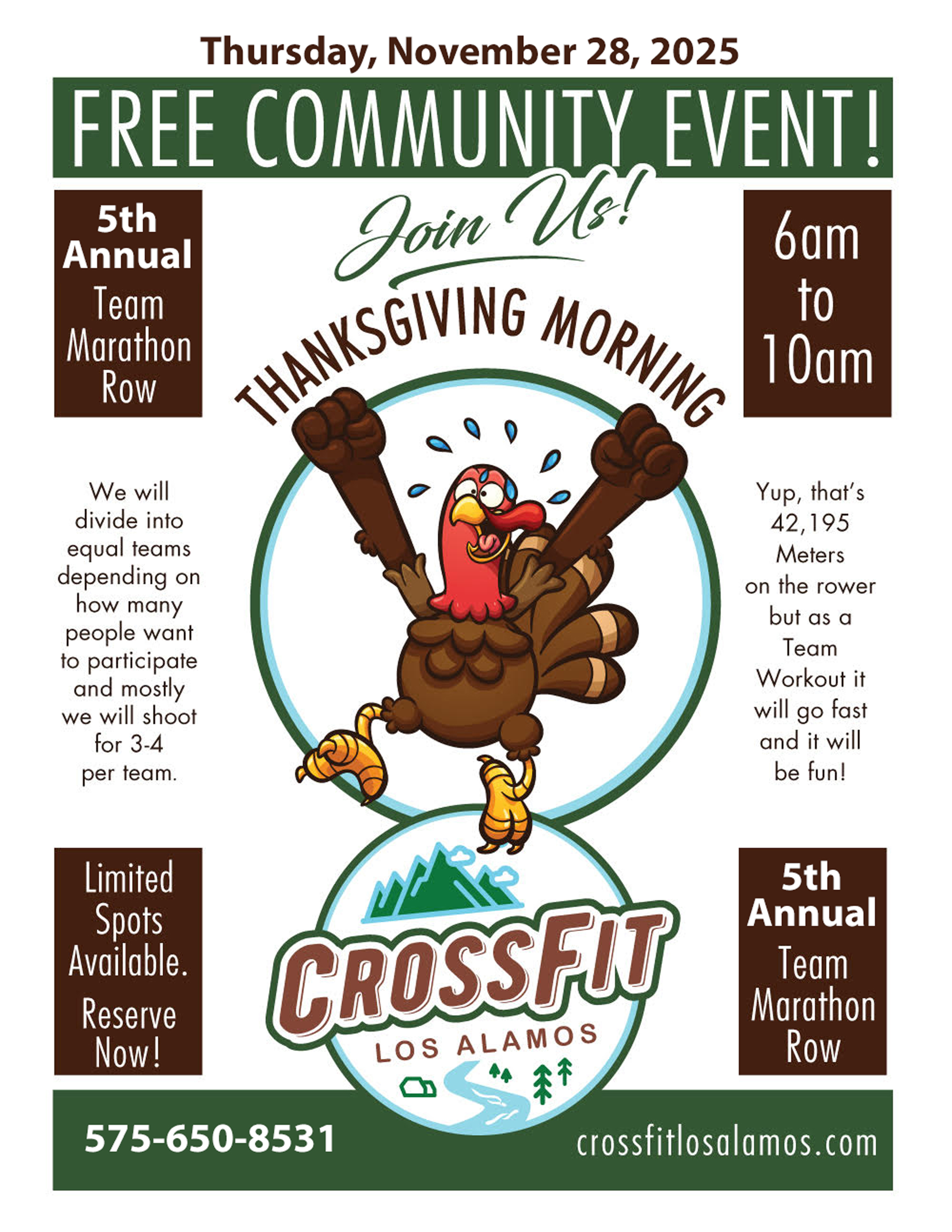 CrossFit Los Alamos is hosting its 5th annual team marathon row event 6-10 a.m., on Thanksgiving Day, Nov. 28.