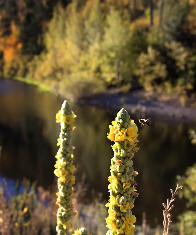 Daily Postcard: A bee prepares to land on a mullein flower near the reservoir. Photo by Lauren Hughes