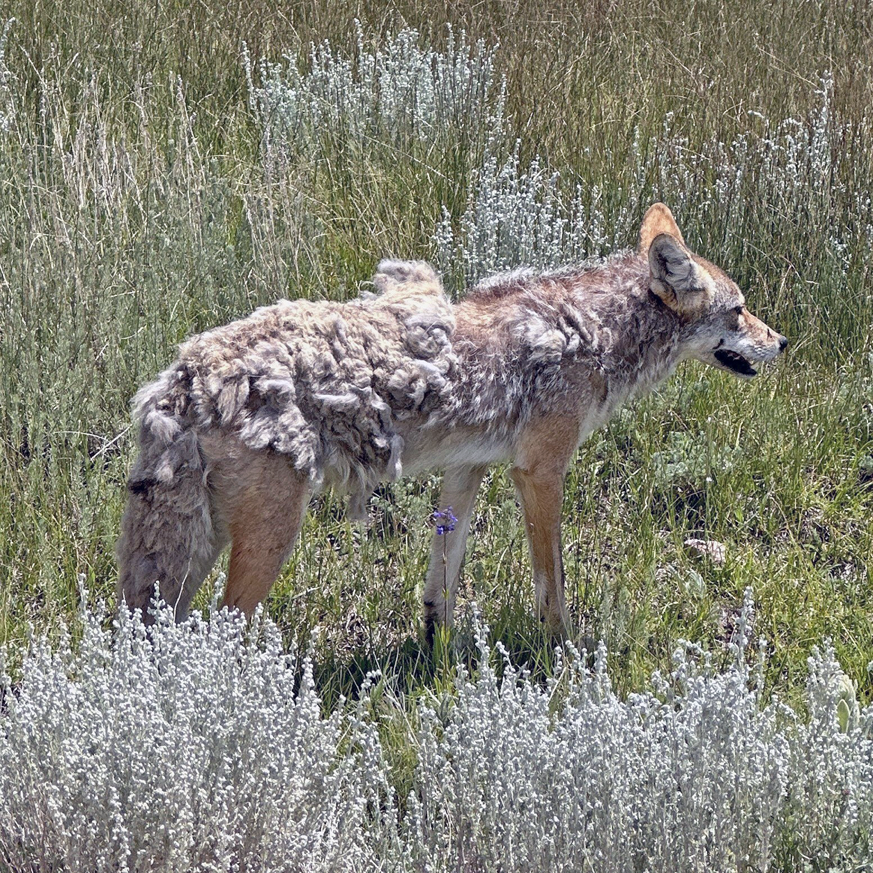 Daily Postcard: A coyote shedding its winter coat spotted on March 11 at Valles Caldera National Preserve. Photo by Todd Cornwell/NPS