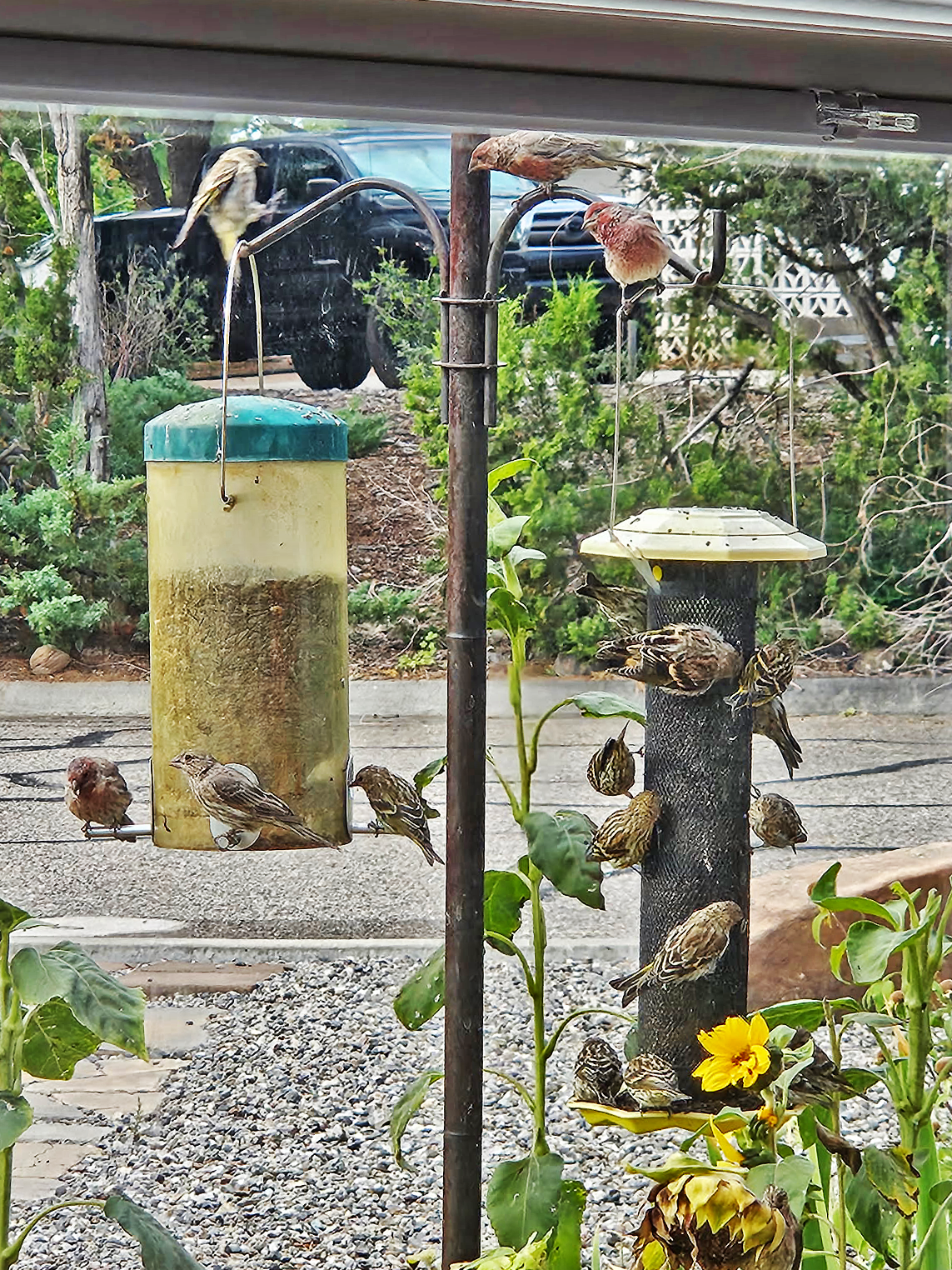 Daily Postcard: Pine Siskins Massing On Thistle Feeder