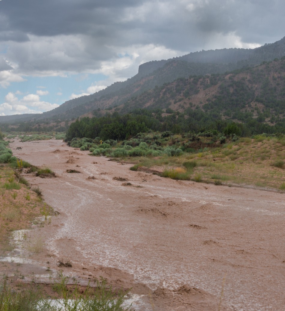 Daily Postcard: The east side of Buckman Mesa Wash floods Wednesday from intense afternoon thunderstorms. Photo by Ken Hanson