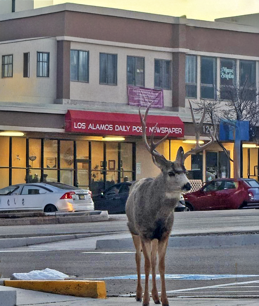 Daily Postcard: A deer spotted early in the evening this week in downtown Los Alamos. Photo by Ryn Herrmann