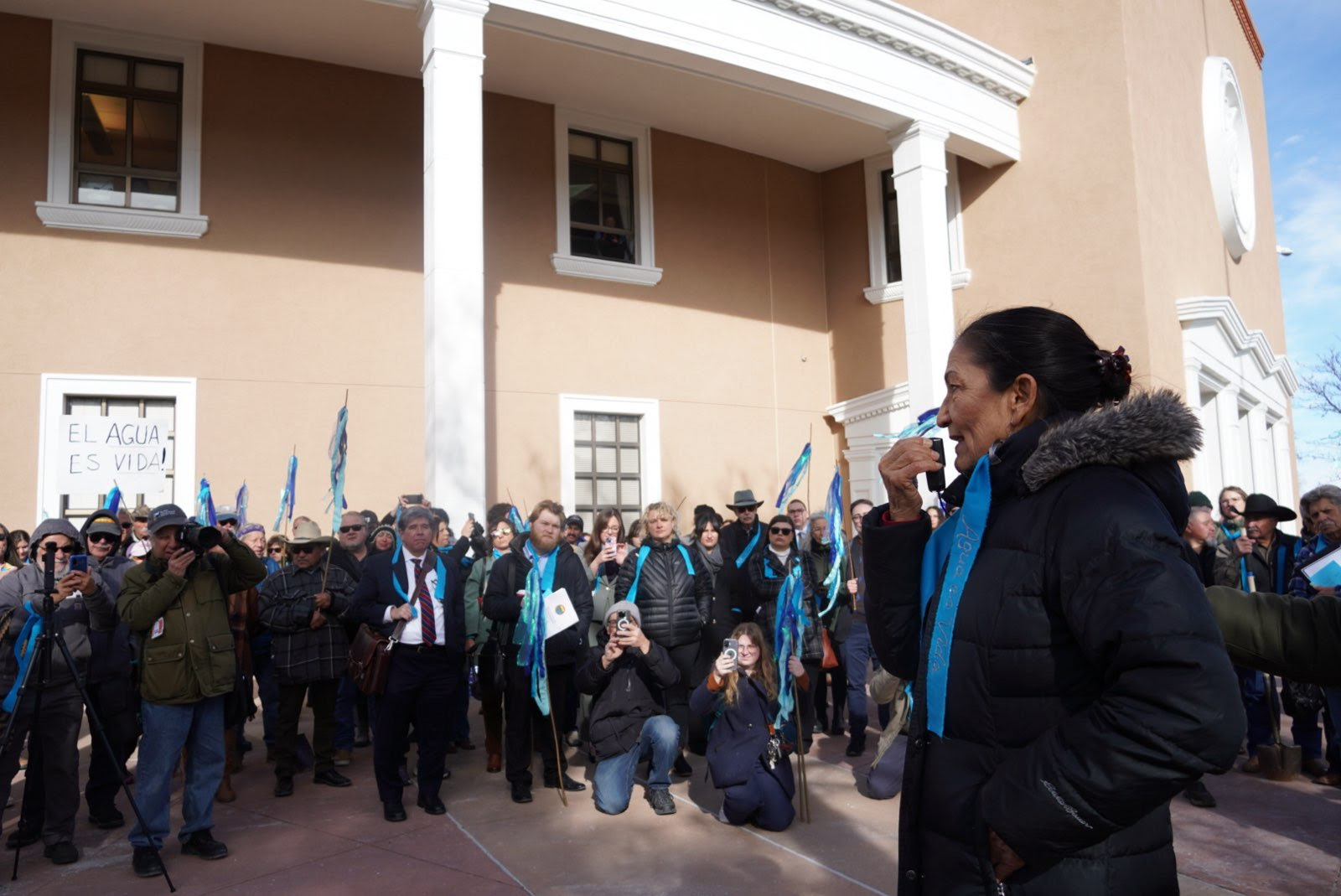 Deb Haaland shows support for Land Grant and Acequia infrastructure at the Roundhouse. Courtesy photo