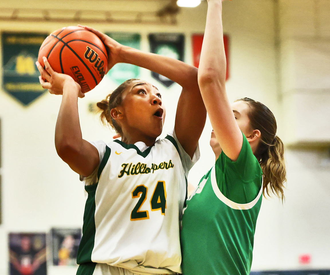 Javaya Davison takes a short jumper over Laura Stewart in the 3rd quarter to score 2 of her 11 points for the night. She was the Toppers high point player. Photo by John McHale/ladailypost.com
